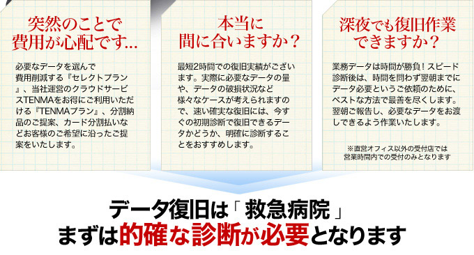 - データ復旧 緊急・お急ぎの方へ