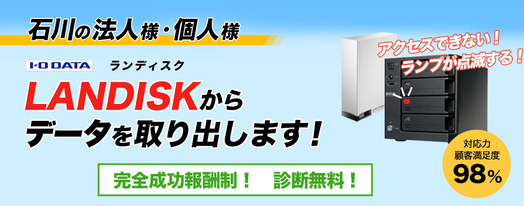 そのため、「必要なデータがLANDISK内に残ったまま」「バックアップが取れていない」等の場合は、データ復旧を行ってから修理を依頼されることをお勧めします。