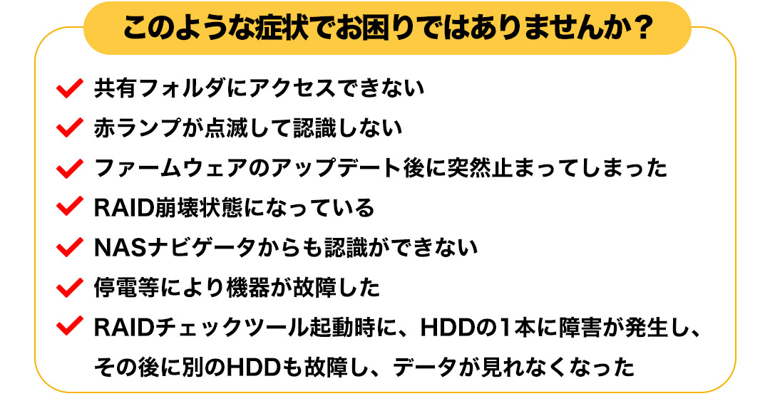 業務に使用するデータが全て保存されているので、業務が止まっており非常に困っています。
