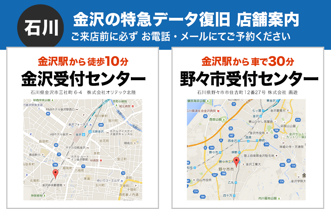 詳細は石川・金沢データ復旧公式サイトよりご確認ください。 石川・金沢データ復旧公式サイトはこちら