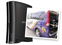 お客様の元へ、当社技術スタッフが伺い、現地でデータ復旧を行います。