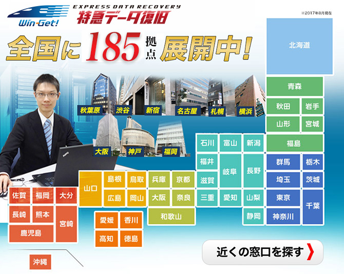 当社の6都市にある店舗(札幌・東京・横浜・名古屋・大阪・福岡)、全国の受付センターにて対応が可能です。店頭では、データ復旧のご相談を伺い、専門スタッフがお客様のご要望に合わせたデータ復旧サービスをご提案いたします。