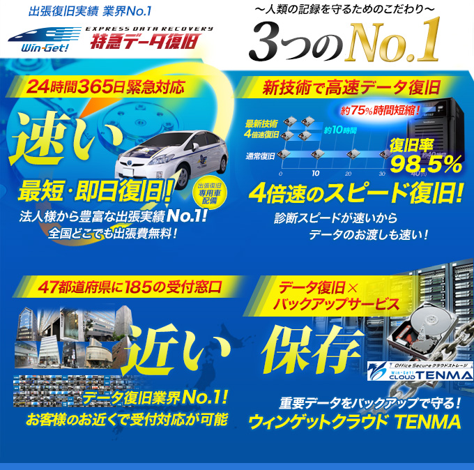 データ復旧専門10 年以上の経験で培った高度な技術と、信頼のサービスでお選びいただいております。出張サービスを業界内でもいち早くスタートさせ、お客様のニーズに合わせたサービスでご満足いただいております。