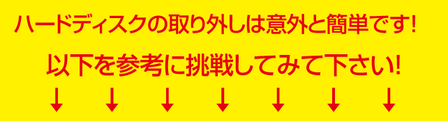 カバーを取り外したら、いよいよハードディスクの取り外しです。