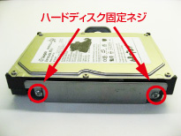 ハードディスクを固定しているネジを取り外して、台座から外します。