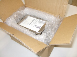その上にハードディスクを置きさらにその周囲と上にも緩衝材を詰めます。