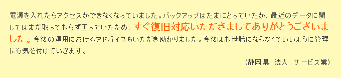 何が原因でこうなったかはわかりませんでしたが、管理データベースだけでも取り出したかったので、復旧会社さんを調べてリプラスさんを見つけました。
