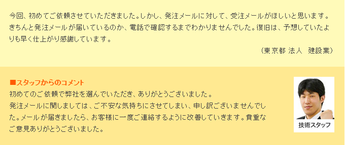 担当していただいた方にも大変お世話になりました。こちらではわからないことをちゃんと答えて頂いたのが助かりました。またお願いします。